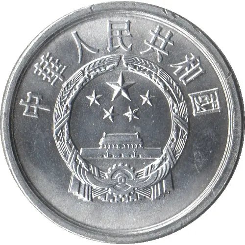 | Obverse description | China`s emblem: Tian`anmen, `Gate of Heavenly Peace`, gate to the forbidden city, 5 stars above it. |