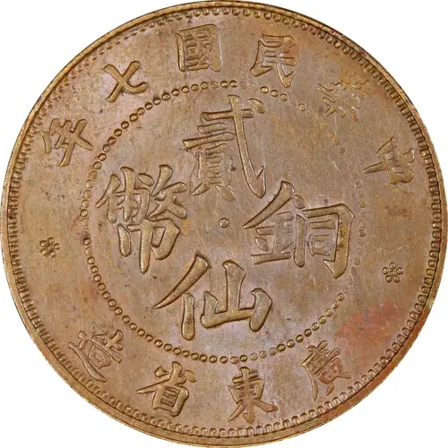 | Reverse lettering | KWANG-TUNG PROVINCE 2 TWO CENTS |