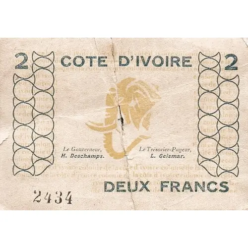 COTE D`IVOIRE DEUX FRANC (Translation: IVORY COAST TWO FRANC) |
