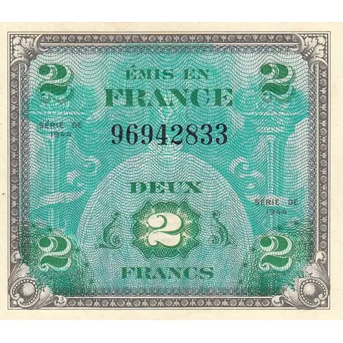 | Obverse lettering | ÉMIS EN FRANCE 1944 SERIES DEUX FRANCS (Translation: ISSUED IN FRANCE SERIES OF 1944 TWO FRANCS) |