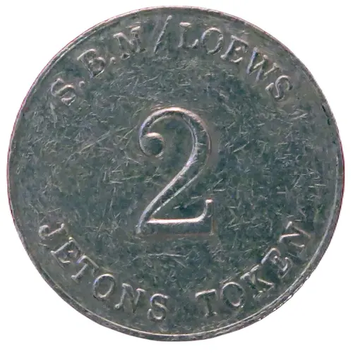| Obverse lettering | S.B.M/LOEWS 2 JETONS TOKEN |