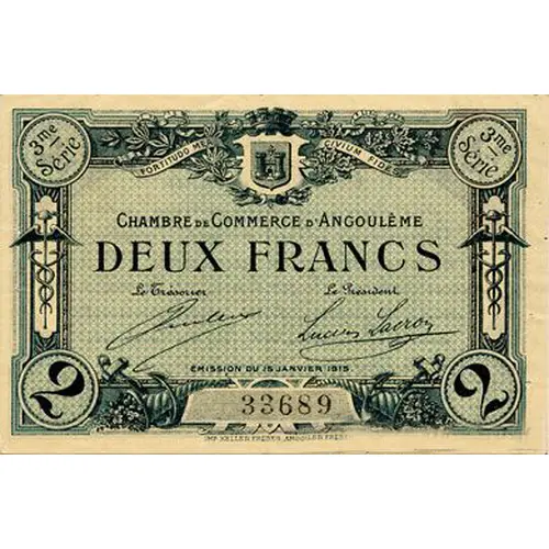 3me série | 3me série CHAMBRE DE COMMERCE D`ANGOULEME DEUX FRANCS 2 | 2 IMP. KELLER FRÈRES, ANGOULÊME |