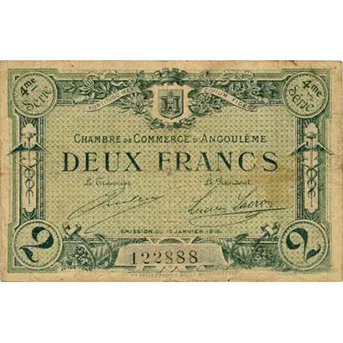 4me série | 4me série CHAMBRE DE COMMERCE D`ANGOULEME DEUX FRANCS 2 | 2 IMP. KELLER FRÈRES, ANGOULÊME |