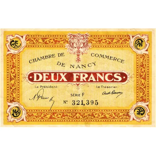 | Obverse lettering | CHAMBRE DE COMMERCE DE NANCY DEUX FRANCS |