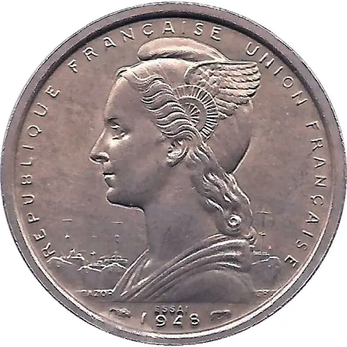 Historical Context: The 1948 French Cameroon 2 Francs Double Piedfort emerges from a pivotal era for the French Fourth Republic. Cameroon was a United Nations Trust Territory under French administration post-WWII. This double piedfort, significantly thicker and heavier, likely served a numismatic or presentation role. It underscored French monetary authority and economic integration, reflecting France's efforts to maintain influence amidst evolving colonial dynamics.
