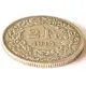 | Opis awersu | Full-length figure of Helvetia, standing, facing left, wearing toga, holding a spear in right hand, and supporting shield with coat of arms of Switzerland with left hand. 22 stars around, representing the 22 cantons of the Swiss confederation. |