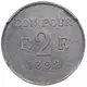 | Reverse lettering | BON POUR F. 2 F. 1892 (Translation: Good for 2 francs) |