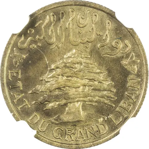 | Obverse lettering | دولة لبنان الكَبير ETAT DU GRAND LIBAN (Translation: State of Greater Lebanon) |