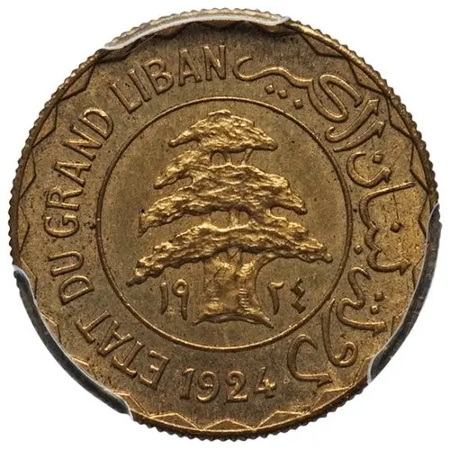| Obverse lettering | ETAT DU GRAND LIBAN دولة لبنان الكبير ٢٤ ١٩ 1924 (Translation: State of Greater Lebanon The State of Greater Lebanon 1924) |