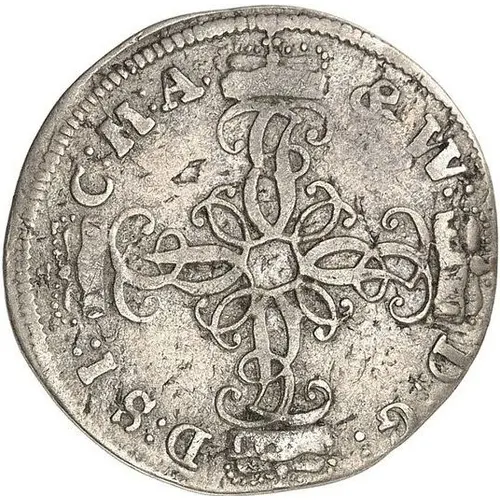 | Popis rubu | Crowned oval shield between palm branches dividing mint official`s initials, value below, date divided by crown above. |