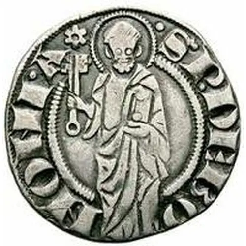 | Obverse description | Standing figure holding keys inside beaded circle. |