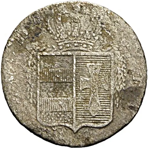 Obverse description Crowned arms with garland