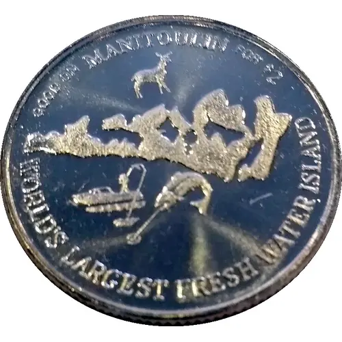 | Obverse lettering | GOOD ON MANITOULIN FOR $2 WORLD`S LARGEST FRESH WATER ISLAND |