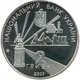 There is the image of miner’s head torch on the left illuminating the conventionalized outlines of industrial enterprises on the right, and there are the legends: against the mirror background above – the semi circumferential legend: НАЦІОНАЛЬНИЙ БАНК УКРАЇНИ (National Bank of Ukraine), underneath there is the Small National Emblem of Ukraine, 2 ГРИВНІ (2 hryvnias) 2007 inscription below, as well as the logotype of the National Bank of Ukraine Mint |