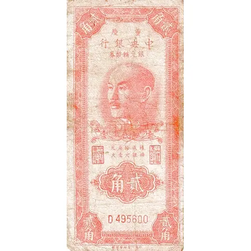 | Obverse lettering | 慶重 行銀央中 券幣輔元銀 兌角拾成積 元壹元銀换 角貳 (Translation: Chongqing Central Bank of China Silver Yuan Note Ten Jiao Exchanged for One Silver Yuan Two Jiao) |