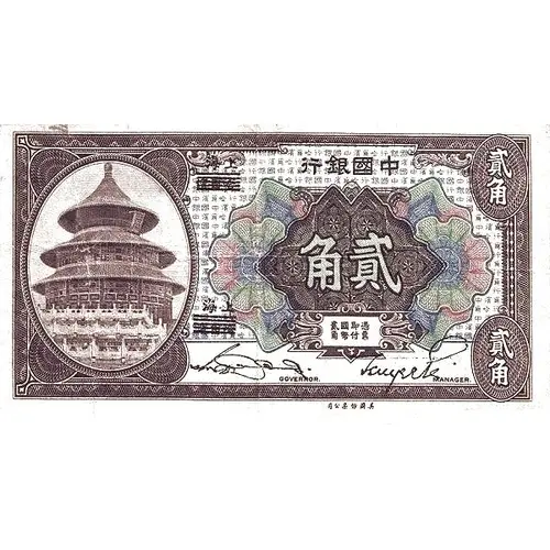 | Obverse lettering | 行银国中 角貳 (Translation: Bank of China Two Jiao) |