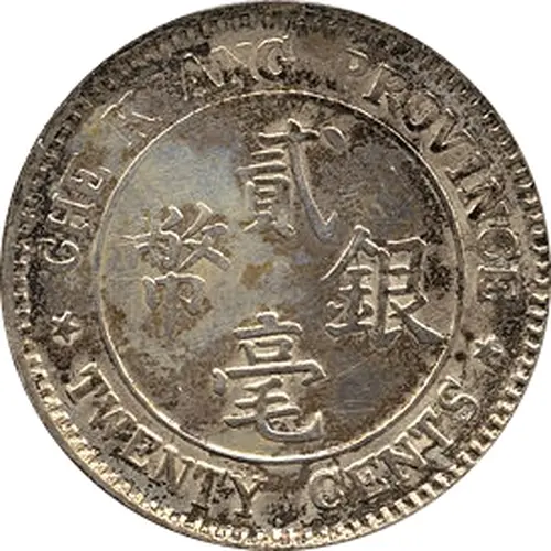 CHE-KIANG PROVINCE 貳 幣銀 毫 TWENTY CENTS (Translation: 2 Jiao / Silver coin) |