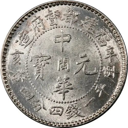 | Obverse lettering | 造府督都建福 亥辛 中 寶閩元 華 釐四分四錢一平庫 (Translation: Made in Fukien Mint Year 48 China / Yuanbao (Original currency) Fu (Fukien) Worth 1 Mace and 4.4 Candareens (weight)) |