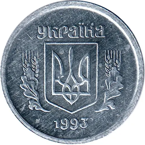 Technical/Grading: Struck in lightweight aluminium (0.64 gg, 17.3 mmmm), this coin is susceptible to specific technical strike characteristics. High-points for grading include the Tryzub's upper prongs and central element on the obverse, and the numerals' raised edges and intricate details of the kalyna berries and oak leaves on the reverse wreath. Due to aluminium's soft nature and small flan, specimens often exhibit weak strikes on finer details, particularly within the wreath. Bag marks and circulation wear are common.