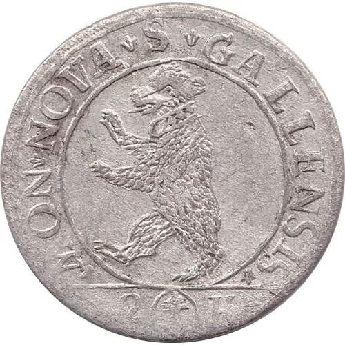 | Надписи аверса | .MON·NOVA·S·GALLENSIS. 2 K |