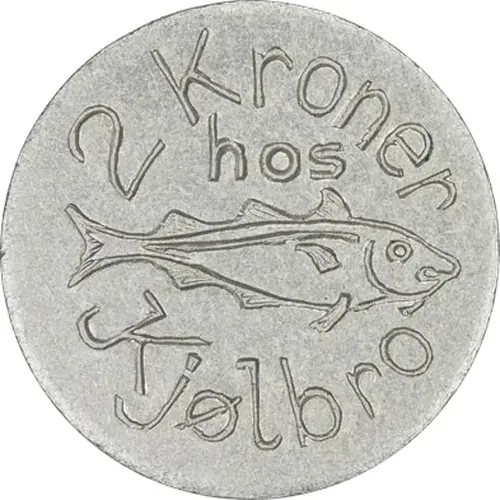 | Obverse lettering | 2 Kroner hos Kjølbro (Translation: 2 Kroner at Kjølbro) |