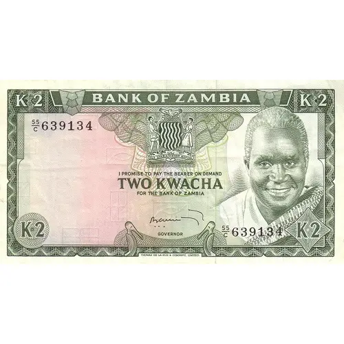 BANK OF ZAMBIA I PROMISE TO PAY THE BEARER ON DEMAND TWO KWACHA FOR THE BANK OF ZAMBIA K2 |
