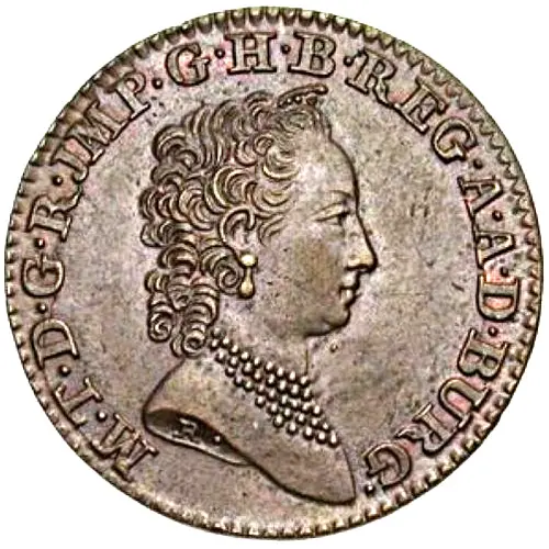 | Auflage | 1749 - hand mintmark: Antwerp Mint - 2 133 495 1749 - lion mintmark: Bruges Mint - 1750 - hand mintmark: Antwerp Mint - 1750 - lion mintmark: Bruges Mint - 1751 - hand mintmark: Antwerp Mint - 1751 - lion mintmark: Bruges Mint - 1752 - hand mintmark: Antwerp Mint - 1752 - lion mintmark: Bruges Mint - 1753 - hand mintmark: Antwerp Mint - 139 263 1753 - lion mintmark: Bruges Mint - Mintage unknown - 1754 - hand mintmark: Antwerp Mint - reported, to be confirmed - 47 496 |