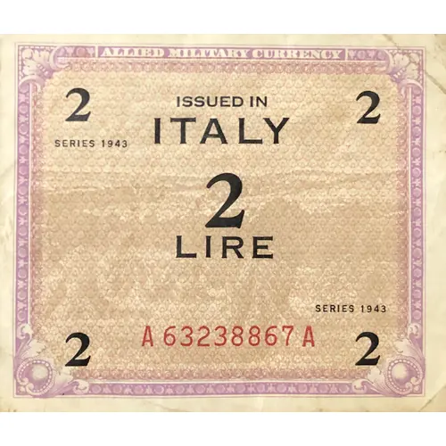 ALLIED MILITARY CURRENCY 2 ISSUED IN 2 ITALY SERIES 1943 2 LIRE SERIES 1943 2 2 |