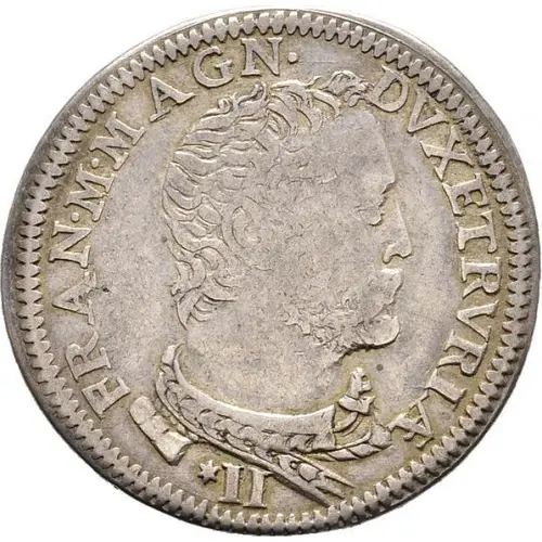 Technical/Grading: For optimal grading, collectors should prioritize the high-points of Francesco I’s portrait, specifically the definition of his hair, facial features, and the intricate details of his collar or drapery. On the reverse, clarity of the Medici arms, including the number and distinctness of the palle and the crown's ornamentation, is crucial. Field preservation, strike quality, and integrity of the legends, particularly the date, are also paramount for this substantial 31-gram silver issue.