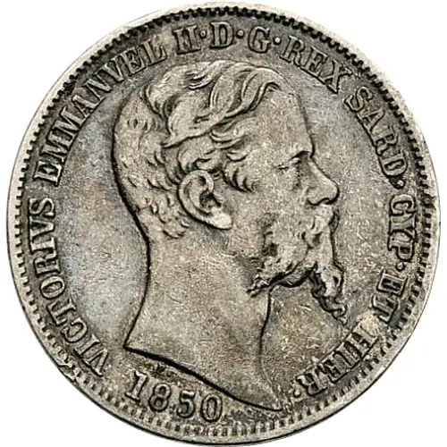 | Obverse lettering | VICTORIVS EMANVEL II·D·G·REX SARD·CYP·ET HIER 1850 |