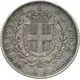 | Reverse description | Crowned shield of Savoy arms, collar of order and laurel wreath suspended around left, bottom and right sides, value L.2 below, with mintname at lower right. |
