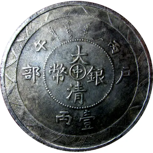 | Reverse lettering | TAI-CHING-TI-KUO SILVER COIN. |