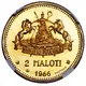 Technical/Grading: As a pattern or proof issue, the 1966 2 Maloti gold coin (0.900 fineness) exhibits exceptional technical qualities. The strike is typically sharp and full, with devices often displaying a frosted appearance against highly polished, mirrored fields—a hallmark of proof coinage. Key high-points susceptible to wear on circulating strikes, such as the King's hair, cheekbone, and the fine details of the mokorotlo and shield on the reverse, are invariably fully rendered on these issues. Collectors should seek examples with pristine surfaces, free from hairlines or contact marks, to appreciate the intended artistry and technical excellence of this significant independence commemorative.