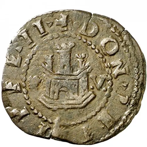 | Obverse description | Castle in beaded circle. Mintmark scallop shell at left. Letter V at right. Castilian legend around. |