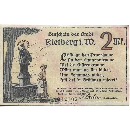 | Issuer | Rietberg (notgeld), City of |