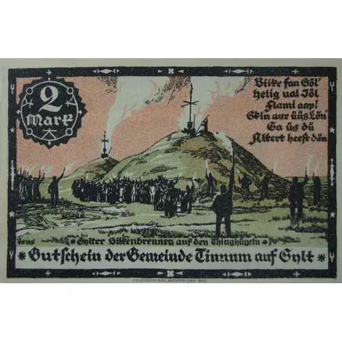 | 背面铭文 | Zwei mark Gutschein der gemeinde Tinnum auf Sylt .Signatures |
