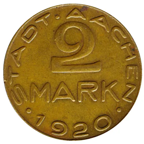 | Obverse lettering | STADT ∙ AACHEN 2 MARK ∙ 1920 ∙ |