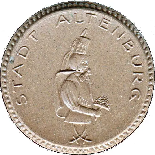 توضیحات روی سکه Pearl rim, city name horseshoed above woman in traditional dress with Meissen crossed swords at bottom