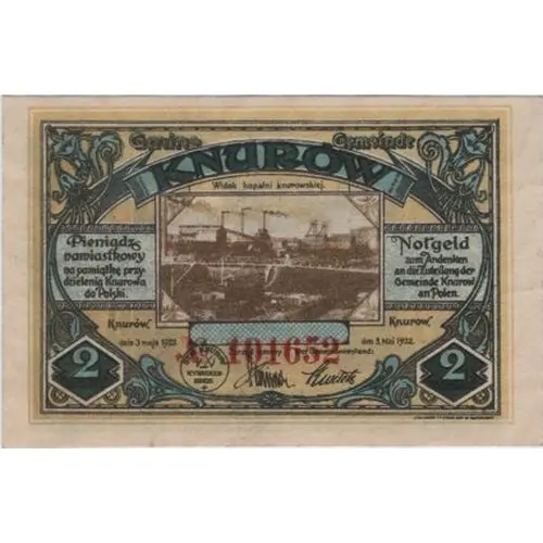 | Obverse description | Pieniądz namiastkowy na pamiątkę przydzielenia Knurowa do Polski. Widok kopalni knurowskiej. |