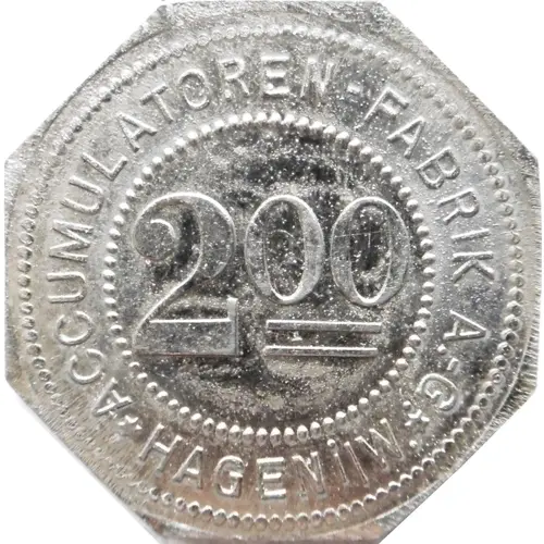| Legenda awersu | ACCUMULATOREN-FABRIK A.G. 2°° * HAGEN i.W. * |