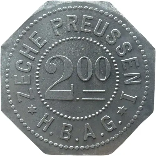 | Obverse lettering | ZECHE PREUSSEN I 2.°° H.B.A.G. |