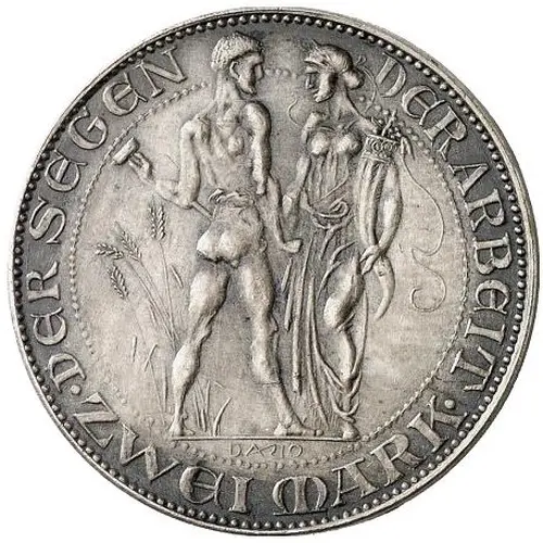 | نوشتههای روی سکه | DER SEGEN DER ARBEIT DASIO ZWEI MARK |