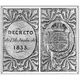 | Obverse description | Carmine on greenish paper, in calcography. On the left, reference to the decree of June 1, 1833. In the center, above, two children`s figures, allegory to the arts. On the right, Weapons of the Empire. |