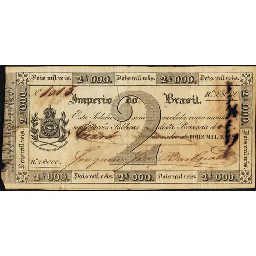 Dois mil reis 2$000. Dois mil reis 2$000. Dois mil reis. 2 Dois mil reis 2$000. 2$000. Dois mil reis. 2 Nº ___ Rs. 2$000. Imperio do Brasil Esta cedula será recebida como moeda nas Esta- ções Publicas desta Provincia d___ _____ _____________ no valor de DOIS MIL REIS. 2 Rs. 2$000. 2 HUM MIL REIS 2$000. DOIS MIL REIS 2$000. DOIS MIL REIS 2 (Translation: 2$000. Two Thousand Réis Empire of Brazil This ballot will be received as currency at the Public Stations of this _____ Province in the amount of Two Thousand Réis.) |