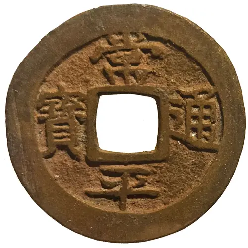 Artistry: Specific engravers for Joseon coinage are rarely recorded, with designs following established calligraphic traditions. The aesthetic of this 2 Mun Pyong coin aligns with the prevalent Joseon style, characterized by clear Hanja inscriptions. The obverse typically features characters denoting its value, 'I-mun' (二文), and currency type, 'Pyongtongbo' (平通寶), cast with precision. The design emphasizes legibility and the elegant flow of script, reflecting a functional yet refined numismatic art, influenced by Chinese prototypes but distinctly Korean.