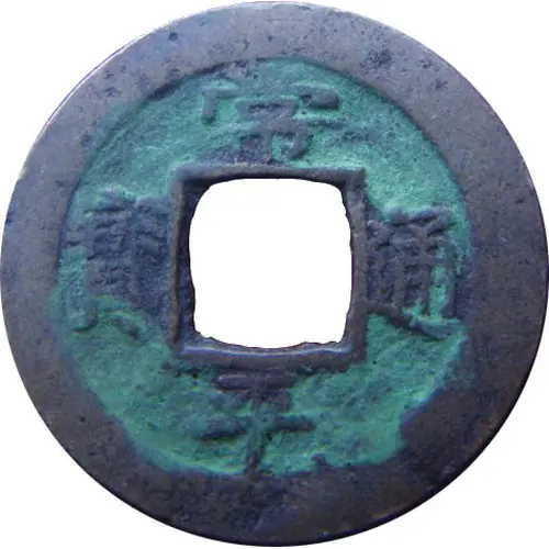 Mint mark at top, one of The Five Elements below, double circle at left and right *营 (Yŏng): Special Army Unit |