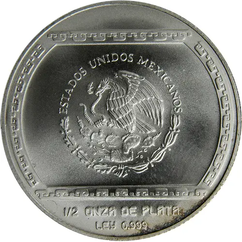 | Obverse lettering | ESTADOS UNIDOS MEXICANOS 1/2 ONZA DE PLATA LEY 0.999 (Translation: United Mexican States 1/2 ounce of silver Fineness .999) |