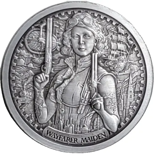 | Obverse description | Young woman holding a long barrel and short barrel pistol |