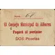 | Legenda del dritto | El Consejo Municipal de Alborea Pagará al portador DOS Pesetas (Translation: Municipal Council of Alborea Will pay the bearer Two Pesetas) |