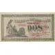 | Obverse description | Black lettering with ornamental perimeter framing and crowned woman sitting with sword in hand and oval emblem of the Spanish Republic and reclining lion, in red background, coats of arms of Asturias and Leon with superior crown |